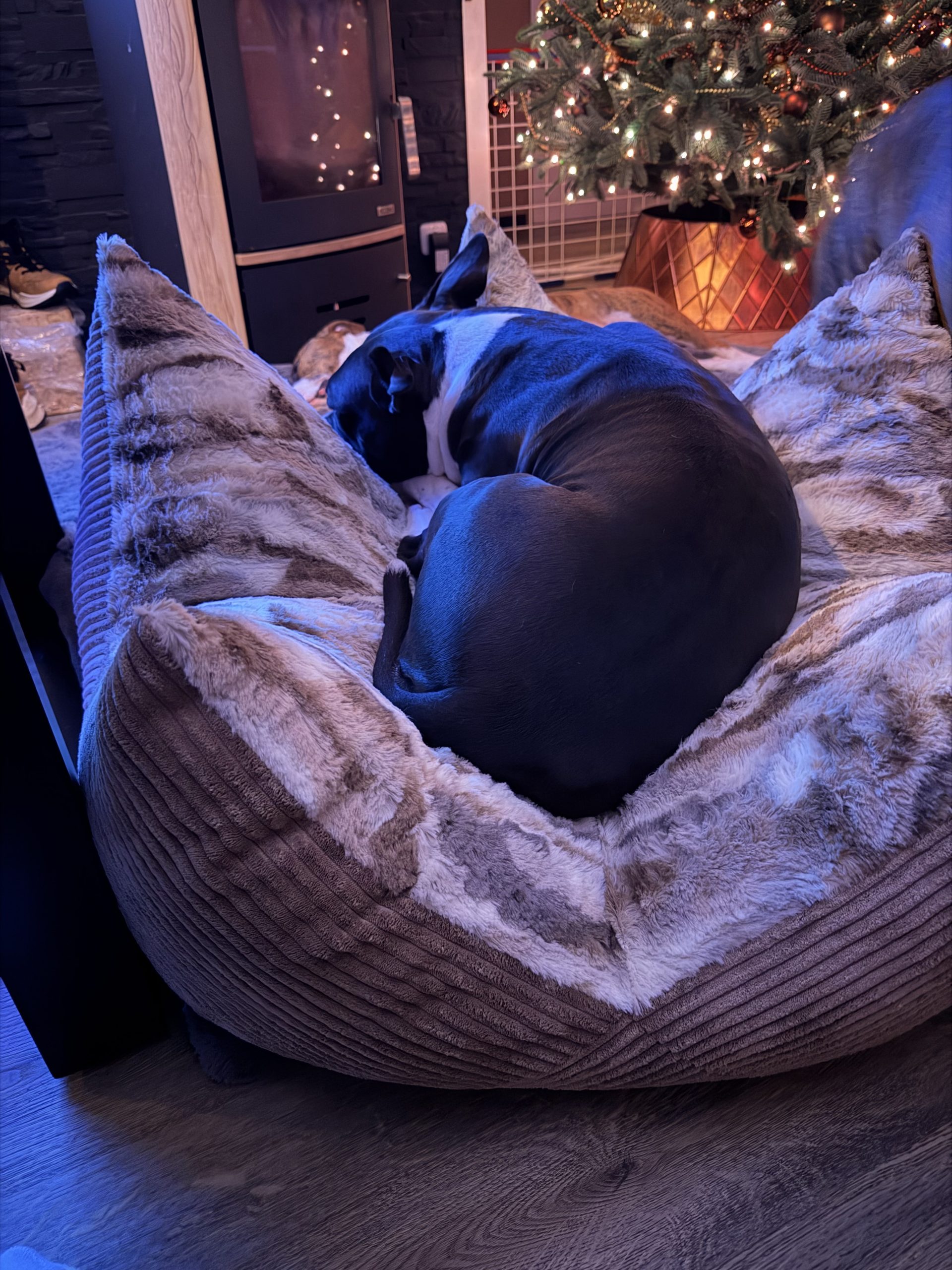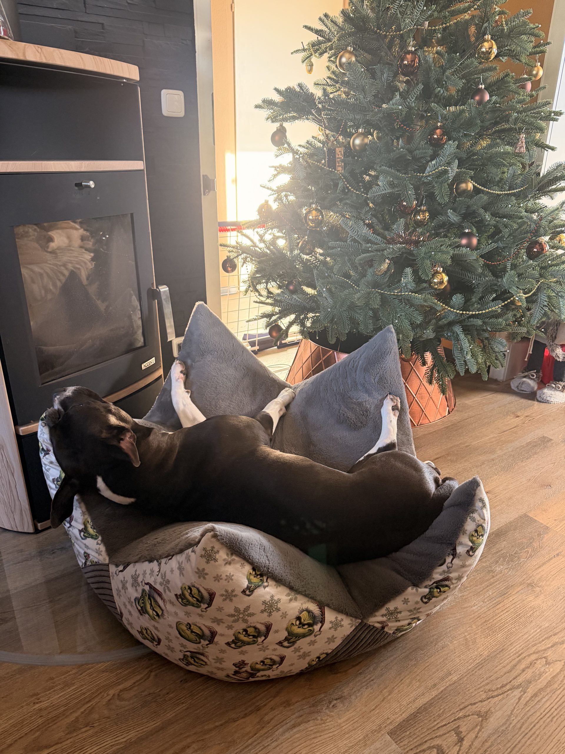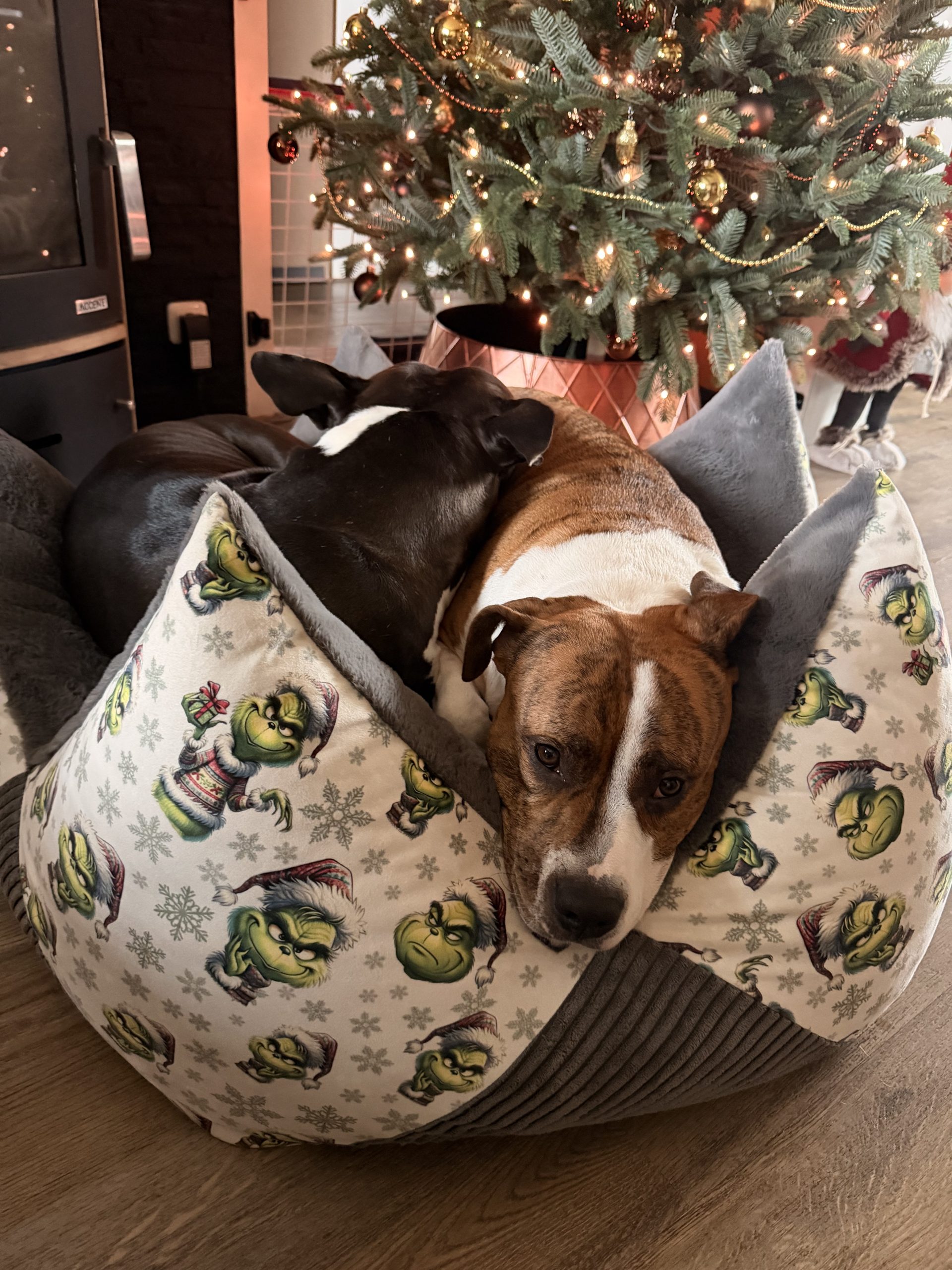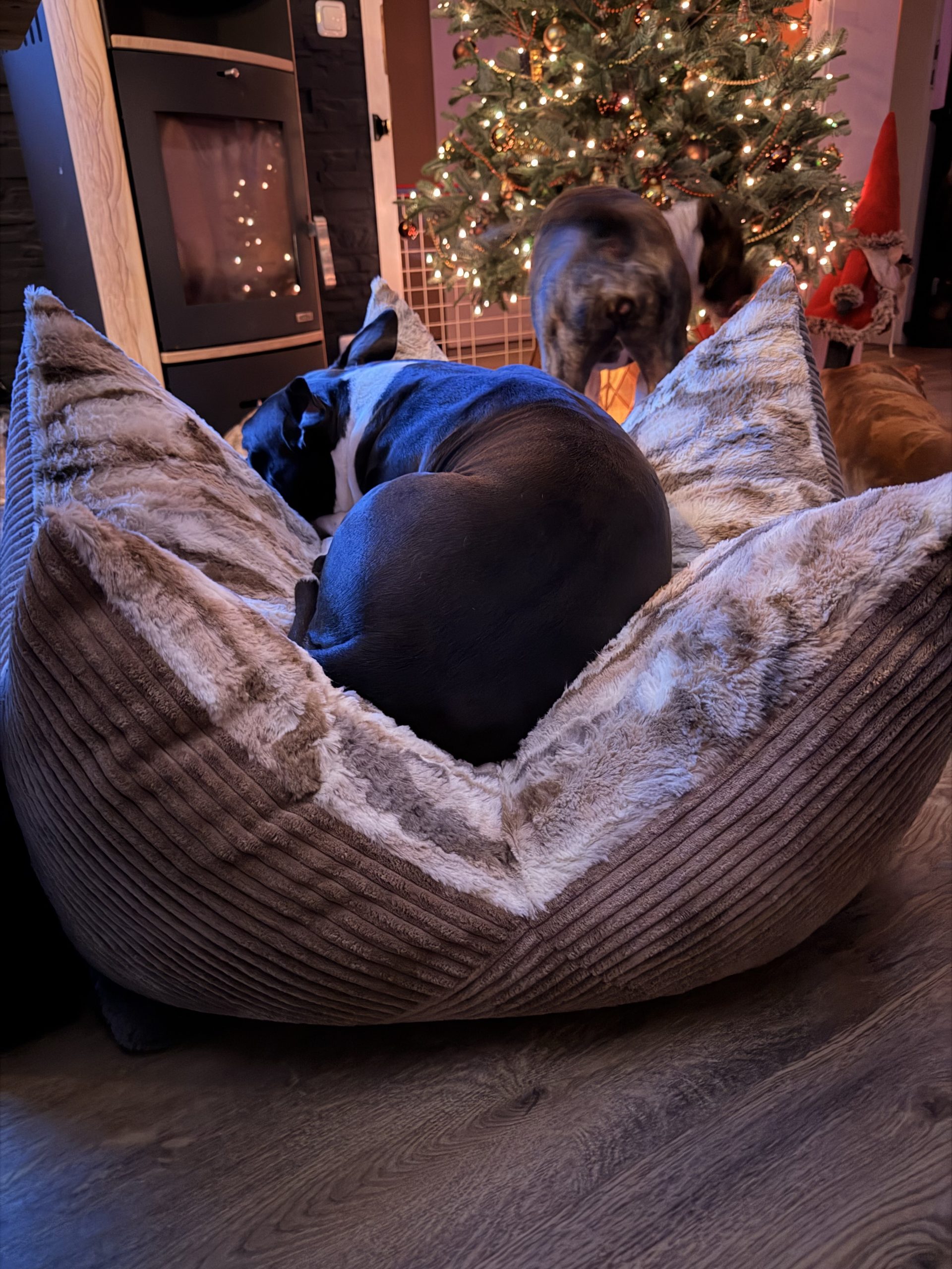 In unserem Sieben-Hunde-Haushalt wurde die Krone intensiv genutzt – vom kleinen Hund bis zum American Bully XL. Alle haben ihren Platz gefunden – eingerollt, angelehnt oder quer liegend.