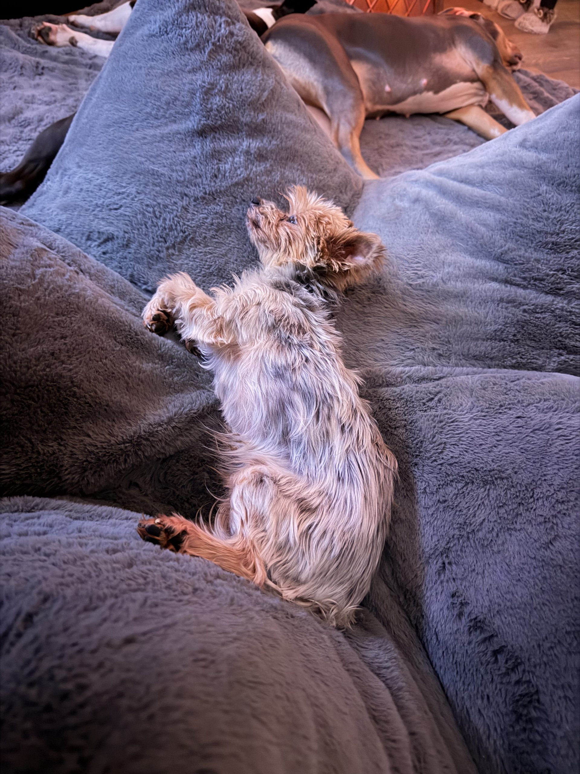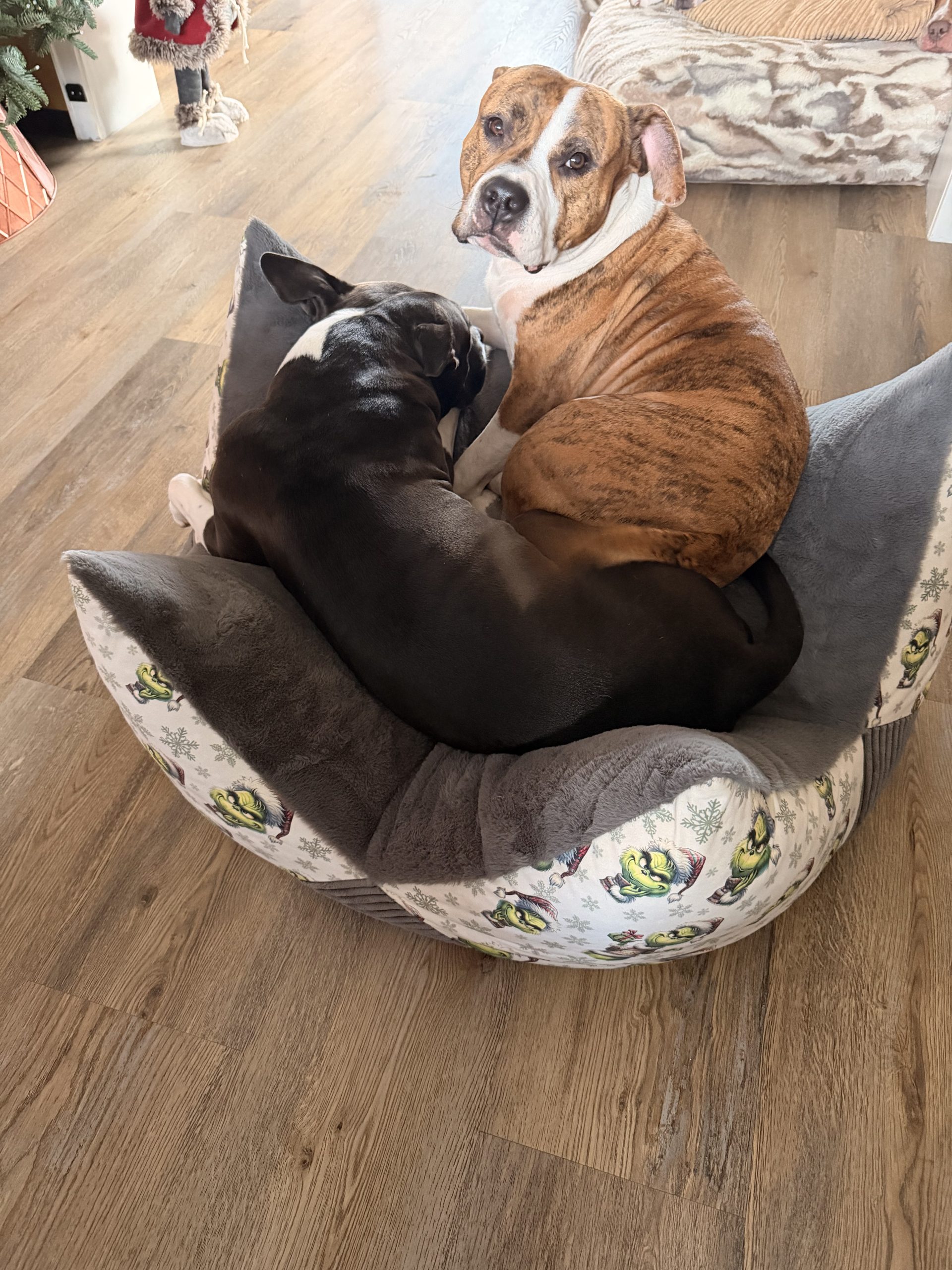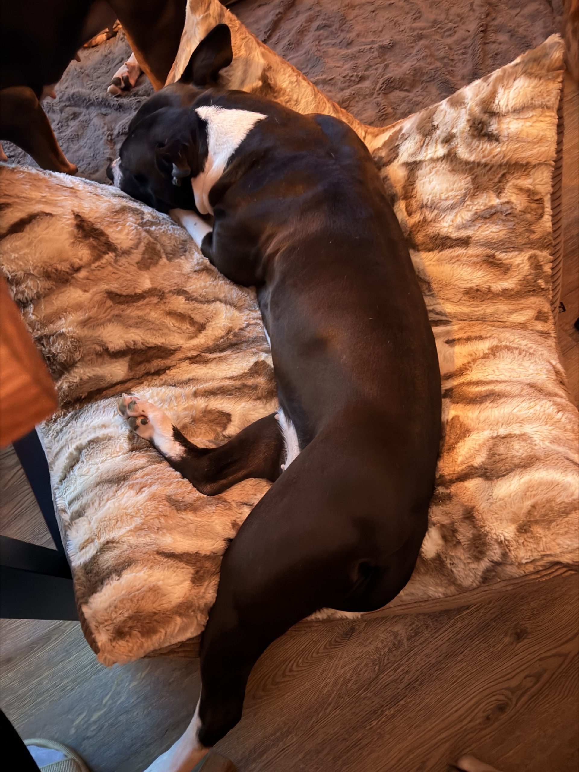 In unserem Sieben-Hunde-Haushalt wurde die Krone intensiv genutzt – vom kleinen Hund bis zum American Bully XL. Alle haben ihren Platz gefunden – eingerollt, angelehnt oder quer liegend.