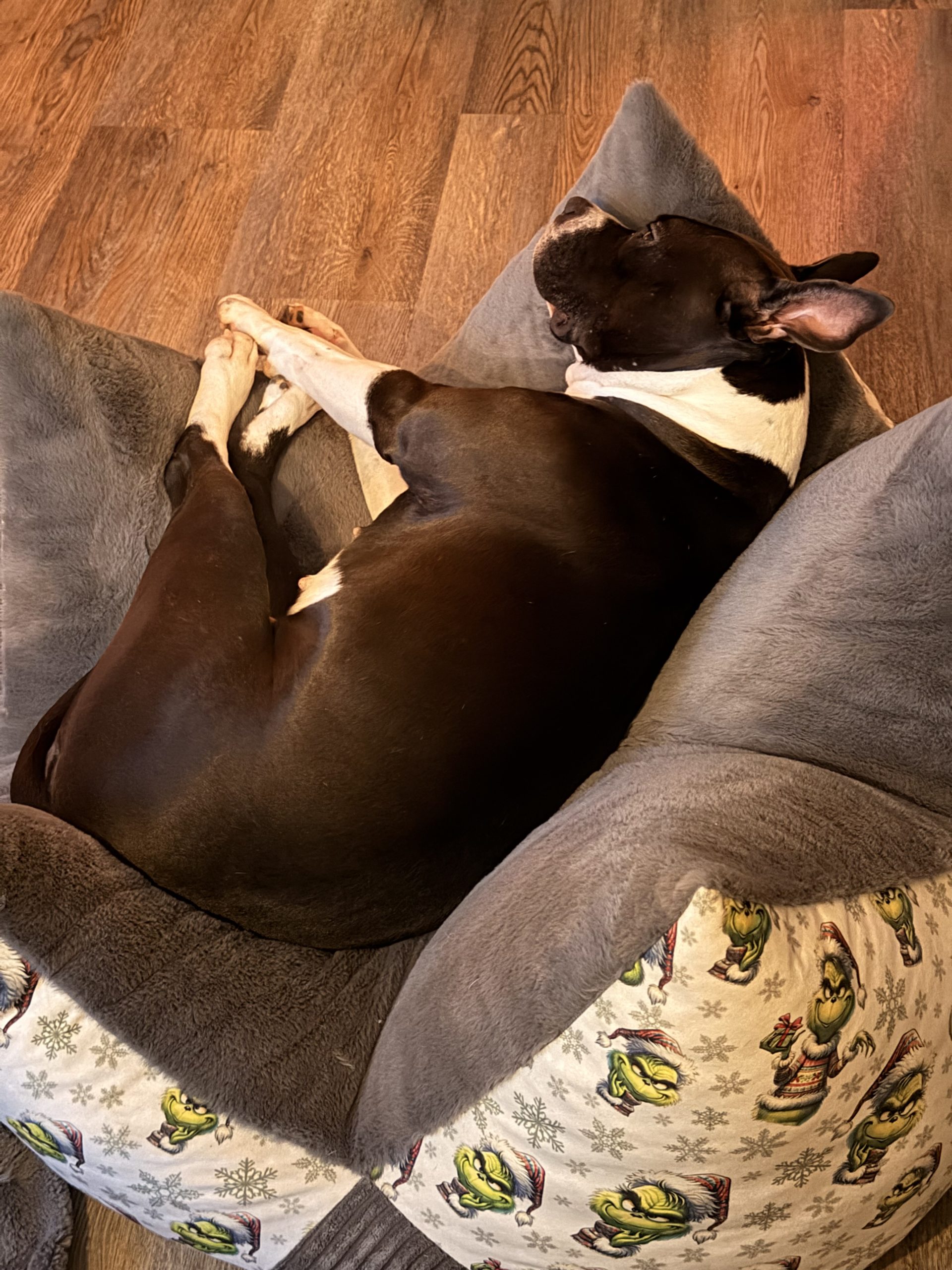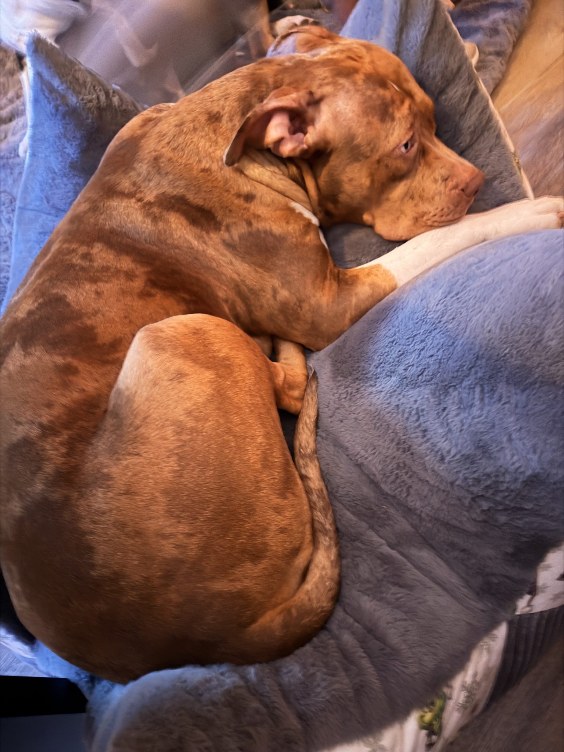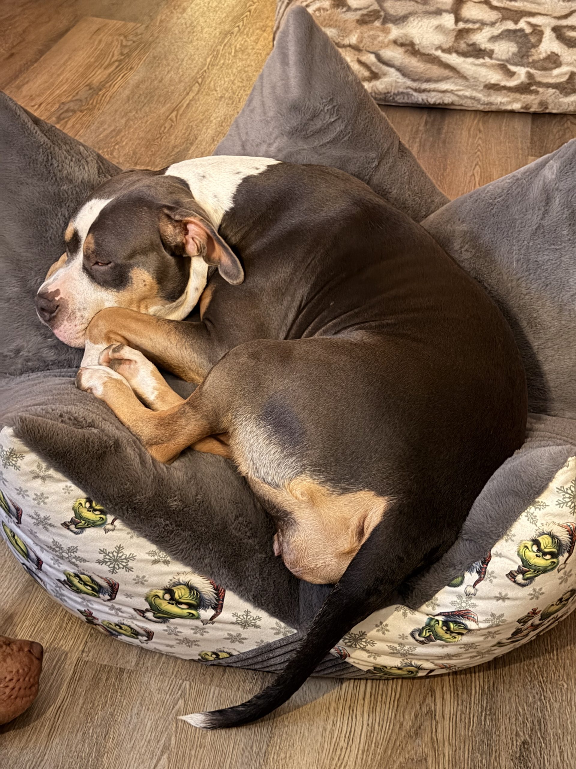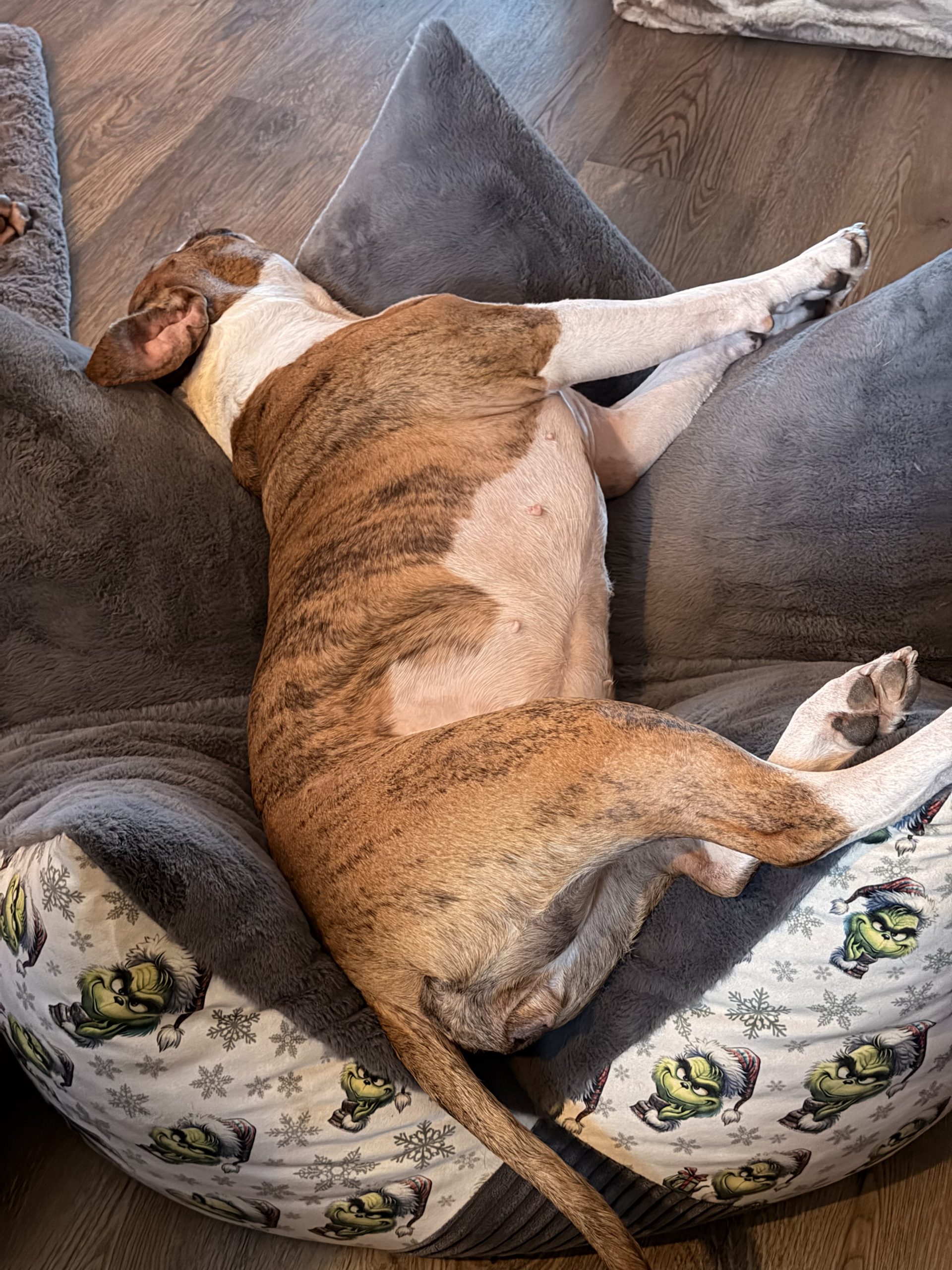 In unserem Sieben-Hunde-Haushalt wurde die Krone intensiv genutzt – vom kleinen Hund bis zum American Bully XL. Alle haben ihren Platz gefunden – eingerollt, angelehnt oder quer liegend.